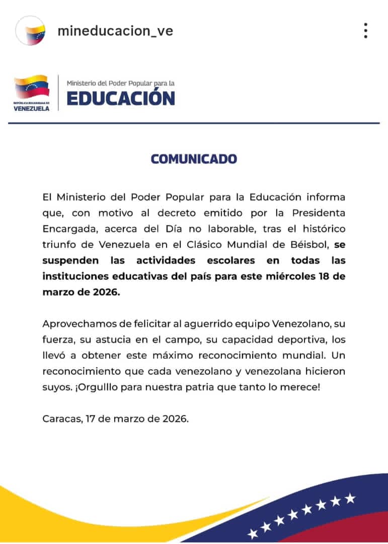 | Estimados Padres y Representantes, reciban un cordial saludo por el nuevo año 2026. Deseando para nuestros estudiantes y sus familias mucha paz y prosperidad. |